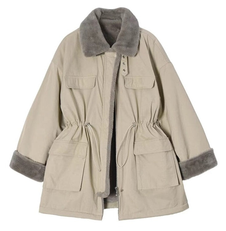 Designed with superior styling and craftsmanship, the long sleeve overcoat offers a unique blend of high street fashion and winter comfort. Featuring a premium fabric blend, a cozy faux fur lined turn down collar, oversized front pockets, with detailed pleated construction. Make your presence known.